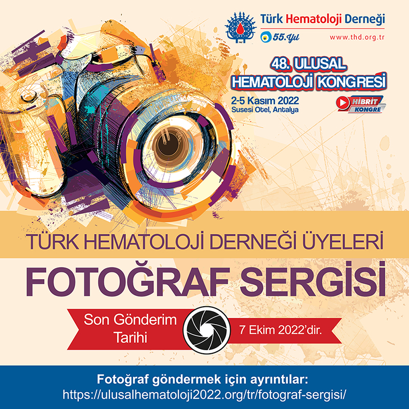 48. Ulusal Hematoloji Kongresi, 2-5 Kasım 2022 tarihleri arasında hibrit olarak Susesi Otel, Antalya’da düzenlenecektir. Bu üç gün boyunca kongre merkezinde dernek üyelerimizin eserlerinden oluşan bir fotoğraf sergisi yapılacaktır. Kuralları aşağıda yer alan sergiye eserleri ile katılmak isteyen değerli üyelerimizin 7 Ekim 2022 tarihine kadar eserlerini belirtilen adrese göndermeleri gerekmektedir.